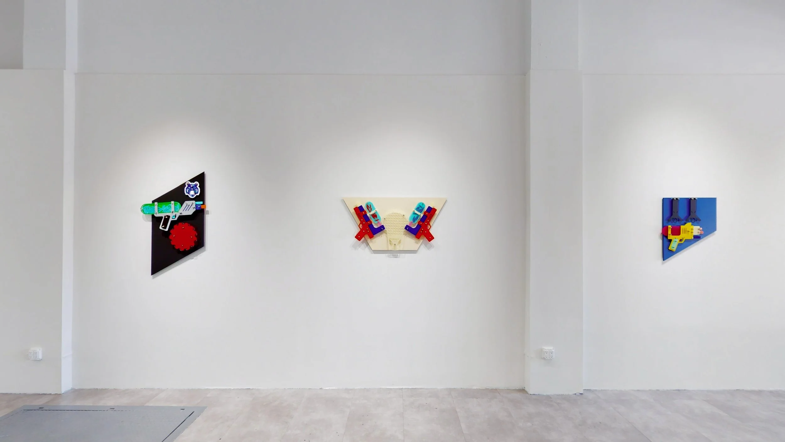 Known for coding, decoding, and recoding through signifiers, Davis centers on the toy water gun, especially that of the Super Soaker, and bullet-like nuts and bolts as his motif to discuss gun violence and violence on Black bodies. Young Black boys playing with toy guns, similar to the Soaker, had led to their death by real guns. As recently as July 21, 2022, teenager