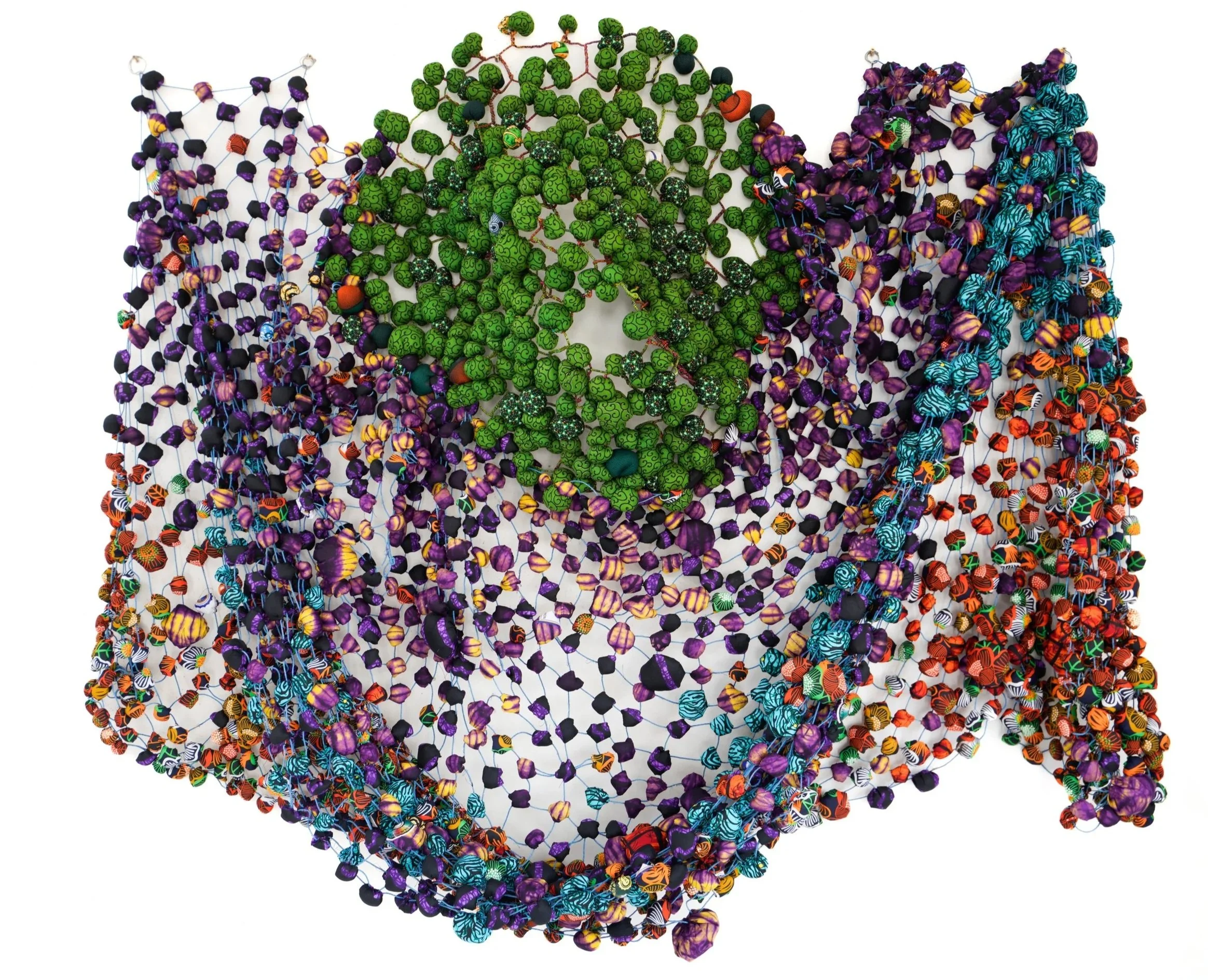 Samuel Nnorom: Breathing Colony (2026) African Print Fabric, 86.61 x 75.98 x 12.59 in. / 220 x 192 x 32 cm. $15,300 USD + Tax