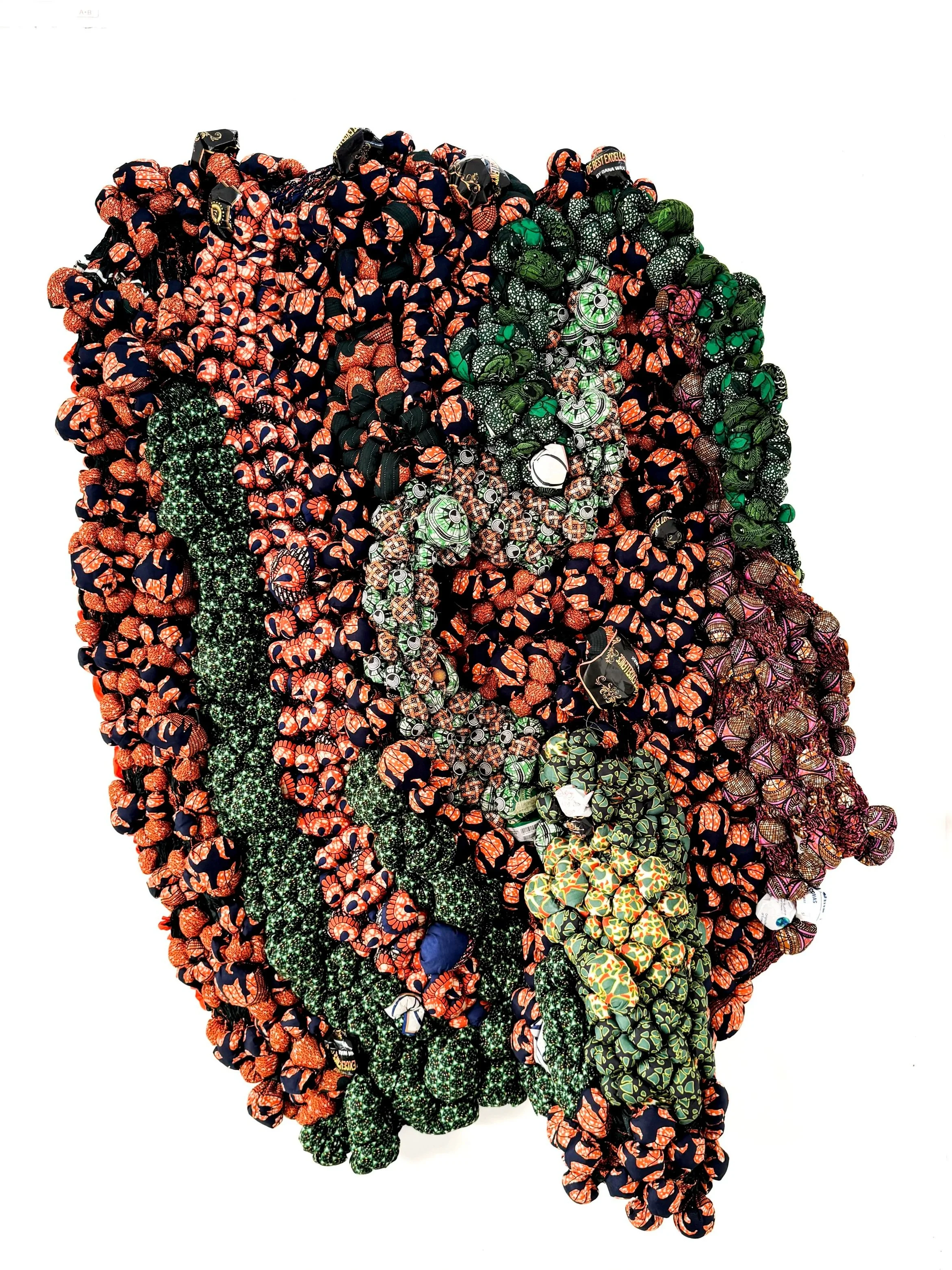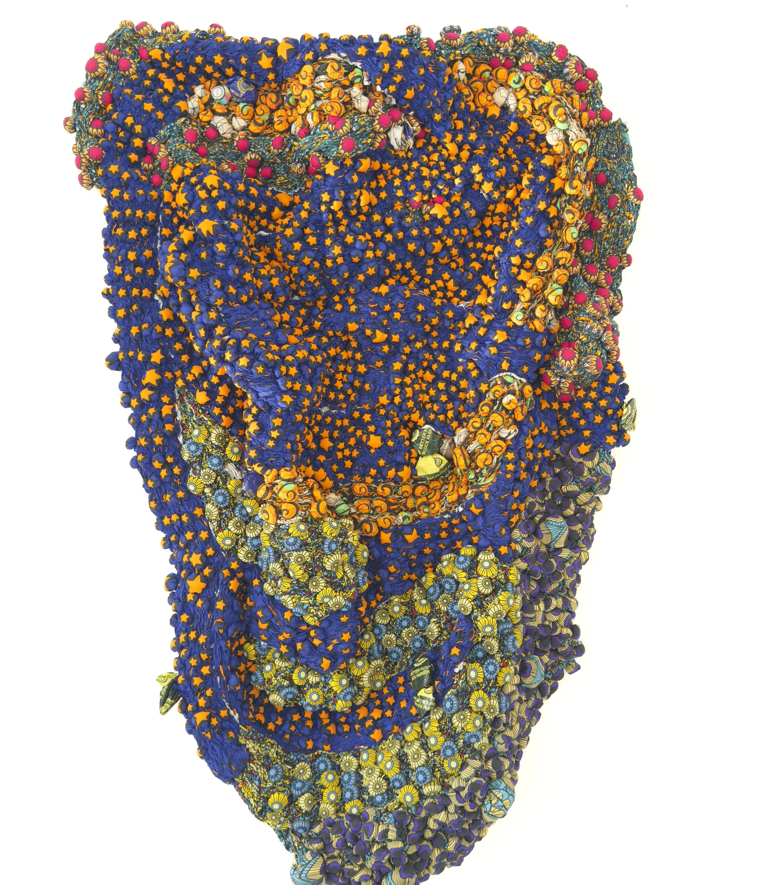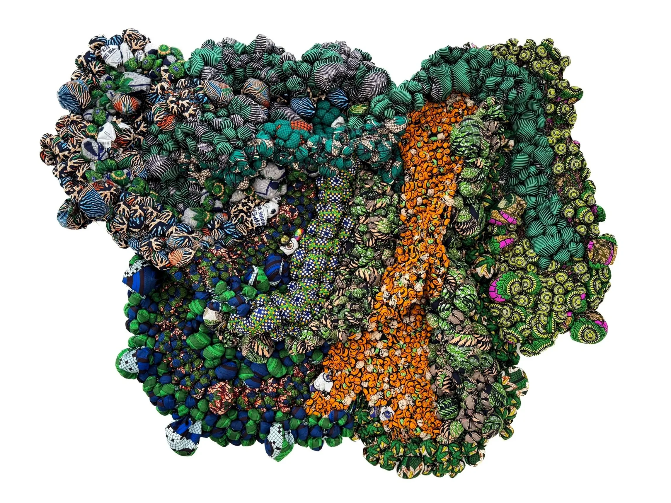 Samuel Nnorom: Ridges of Becoming (2025) African Print Fabric, 55.11 x 75.19 x 12.59 in. / 140 x 191 x 32 cm. $12,000 USD + Tax