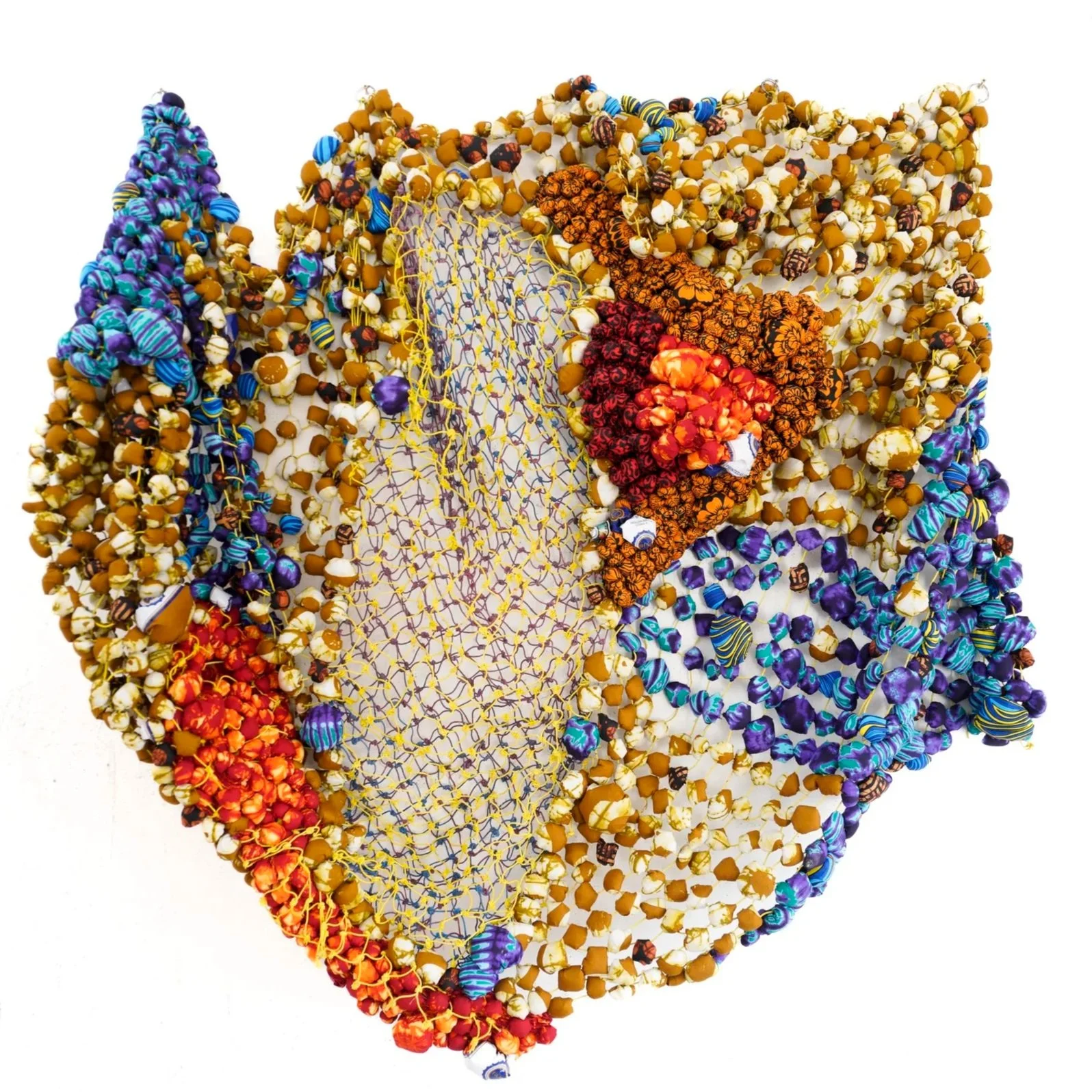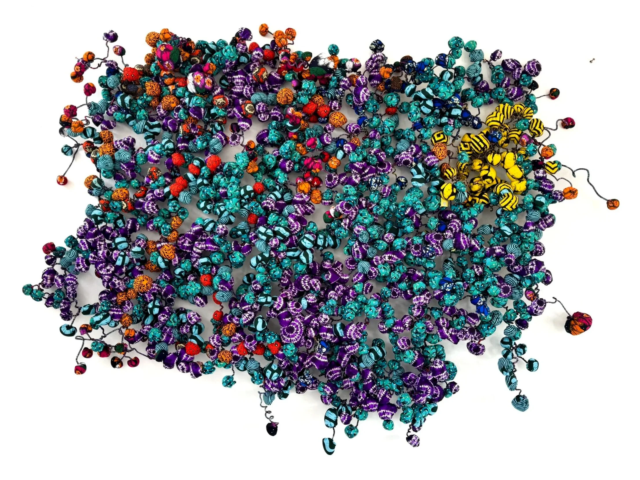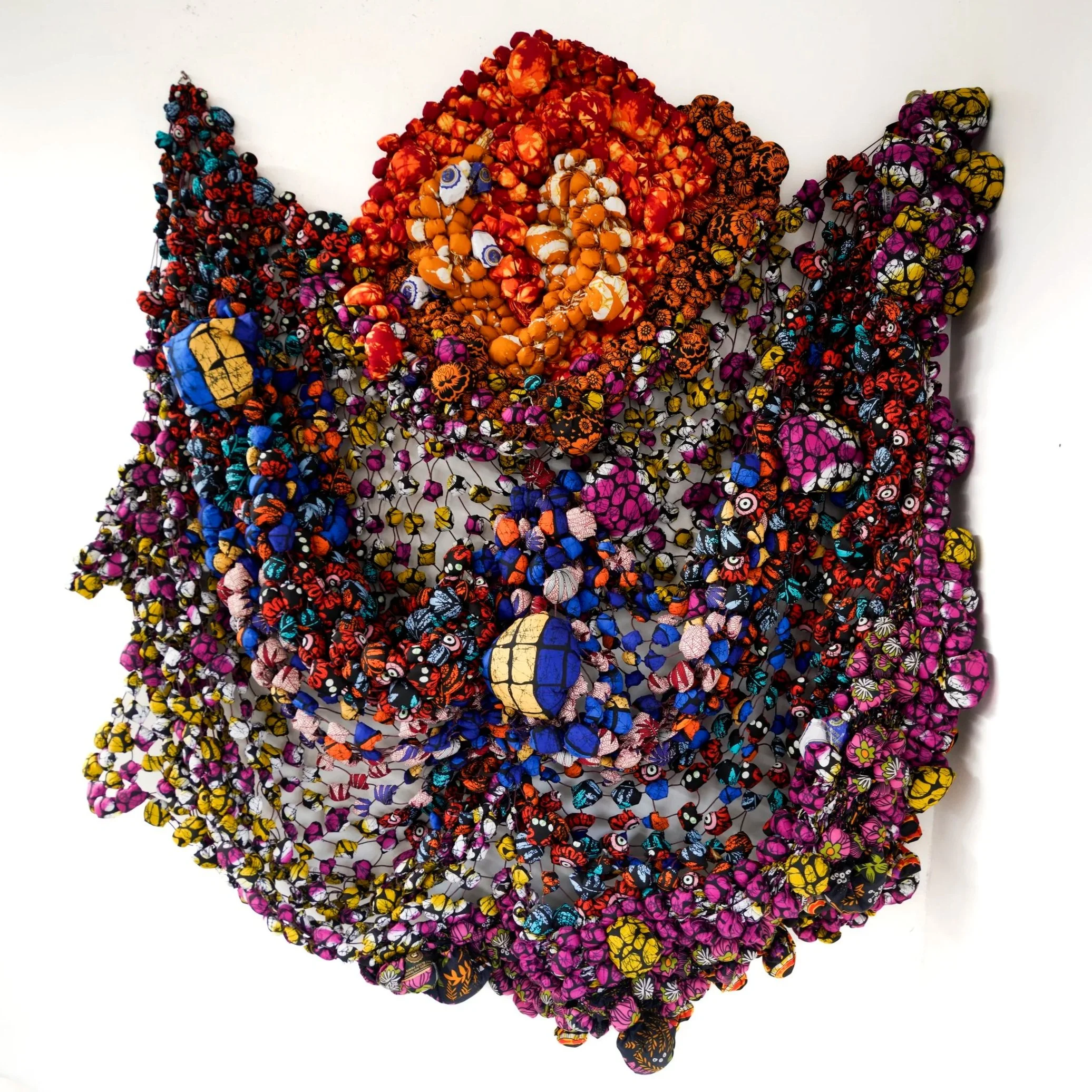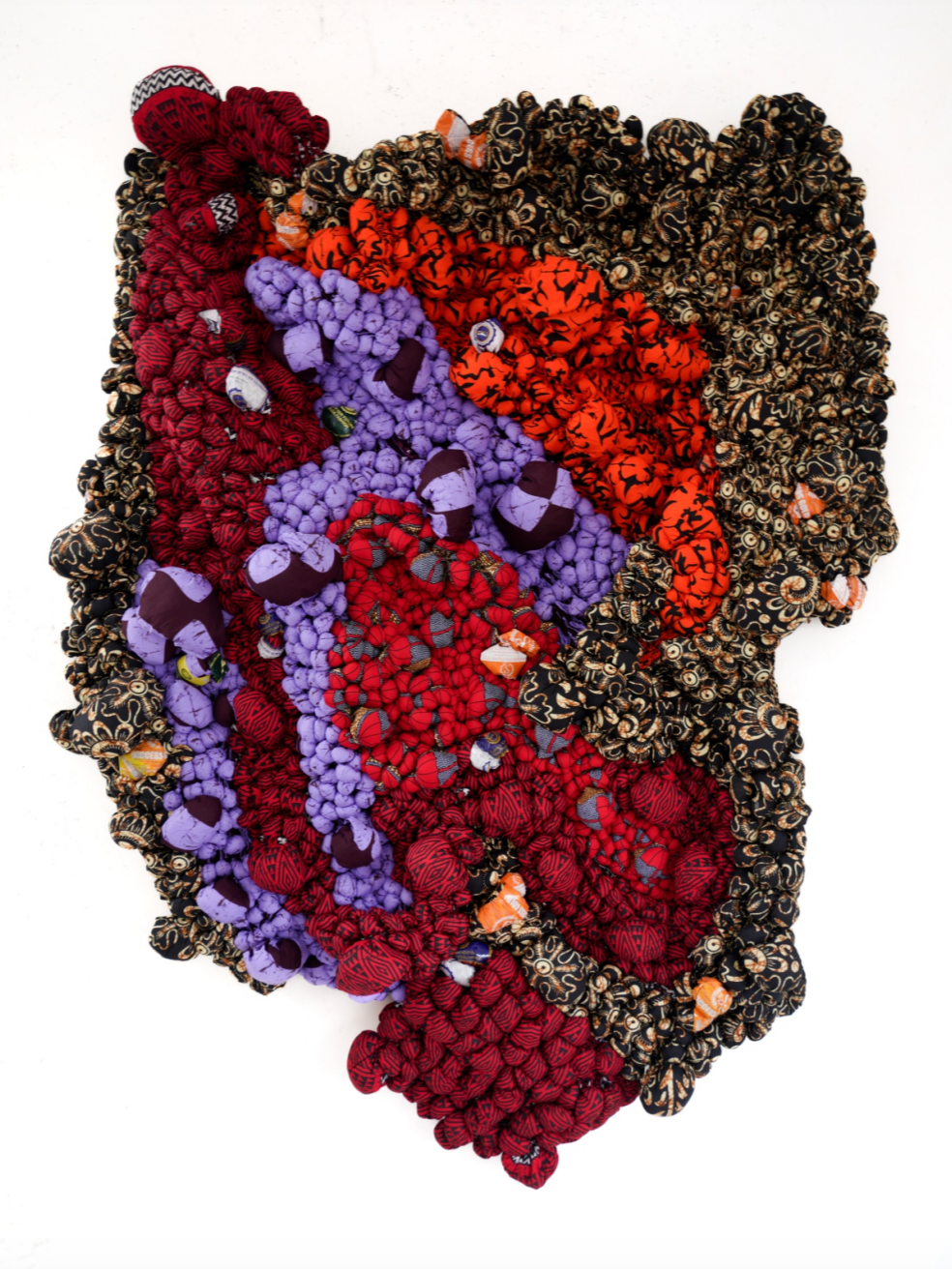 Samuel Nnorom: Ridges of Becoming (2025) African Print Fabric, 55.11 x 75.19 x 12.59 in. / 140 x 191 x 32 cm. $12,000 USD + Tax