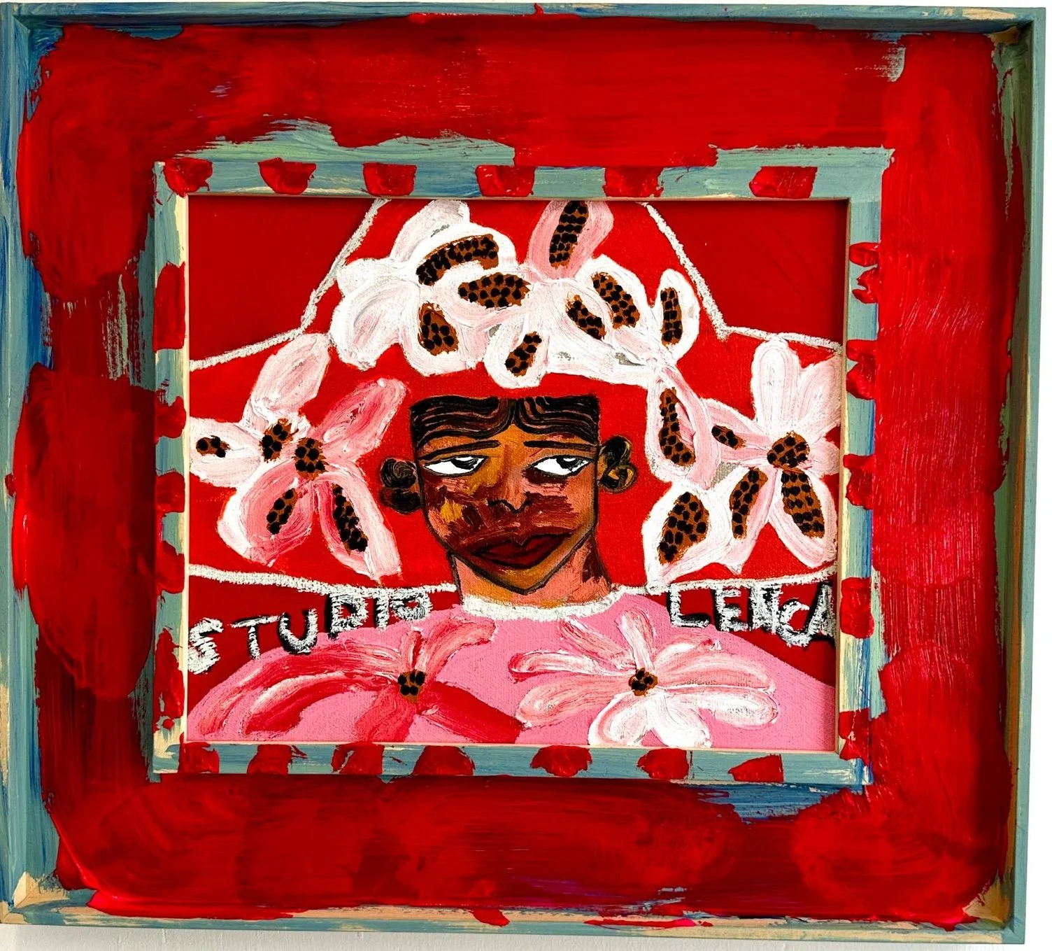 Studio Lenca: Flores (2025) Oil and acrylic on canvas with wooden painted frame, 42 x 47 cm. /16.53 x 18.89 in. SOLD