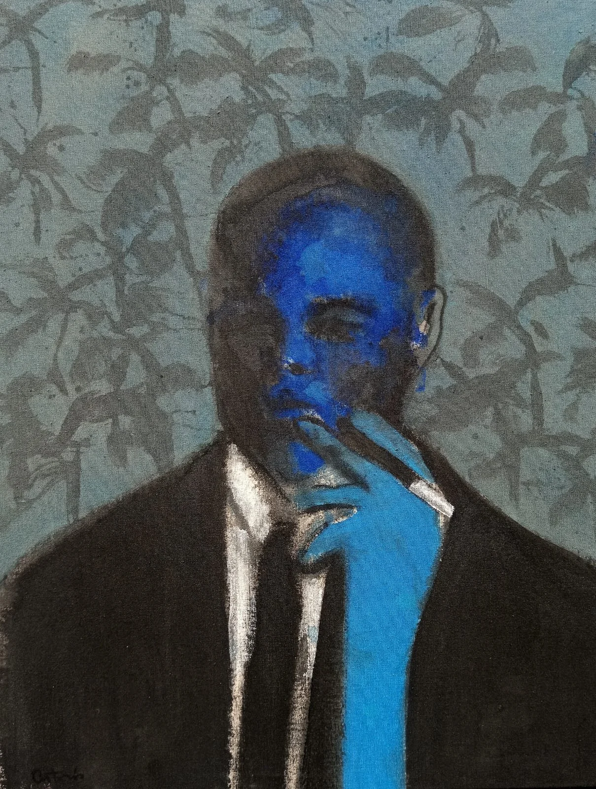 Elmi Mata: Blue Spirit (2025) Oil on canvas, 40.64 x 73.77 cm. / 16 x 20 in. $2,000 USD