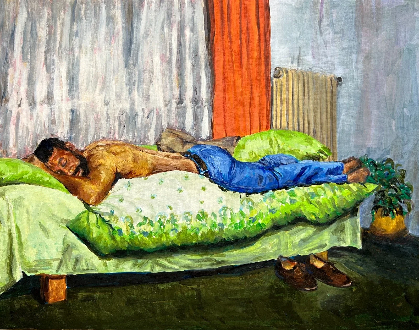 Boris Torres: Franz resting (2023), oil on panel, 10 x 14 inches