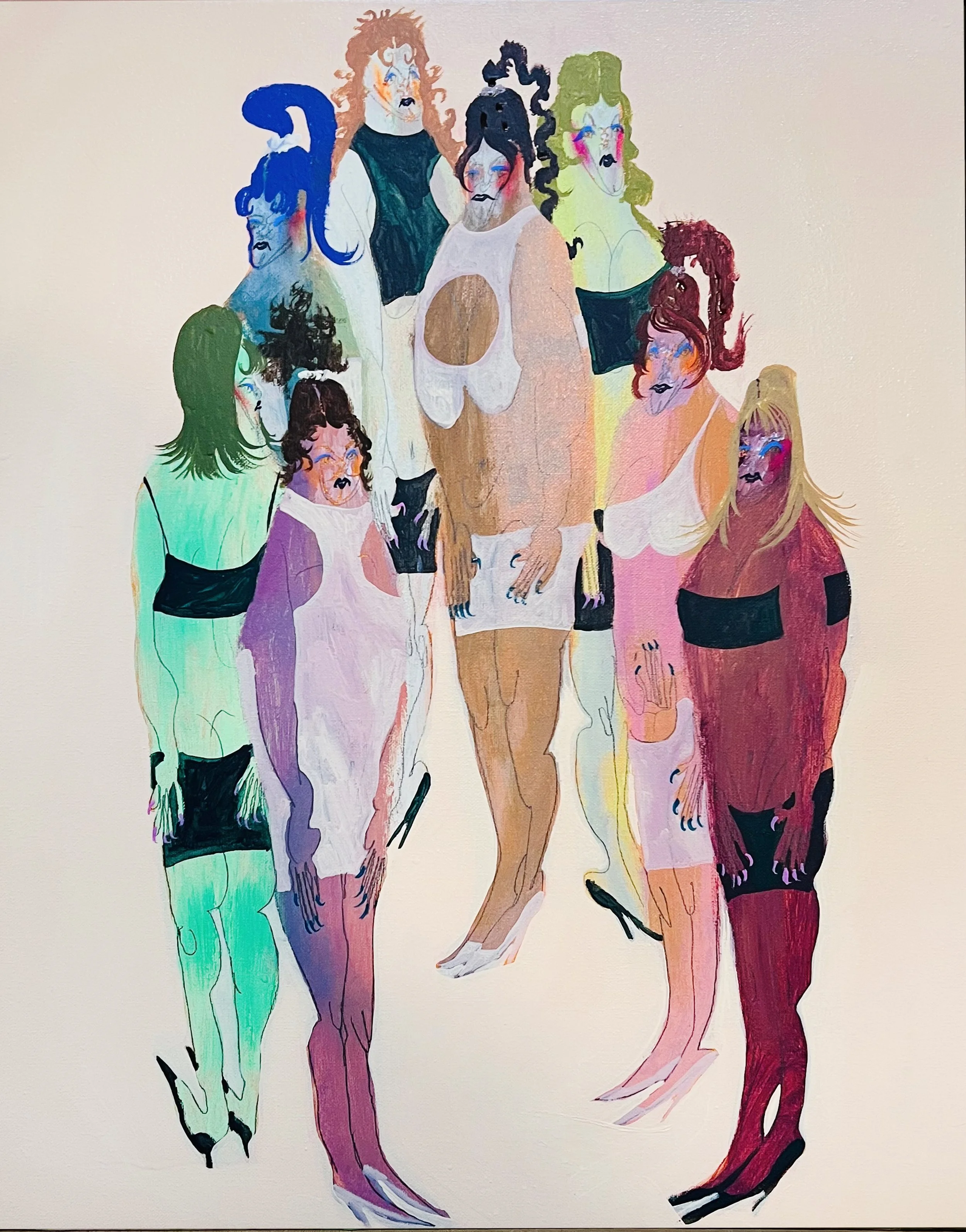 Kevin Sabo, Drag Brunch, 2023, Acrylic, pencil and oil pastel on canvas, 24x18 in $3000USD