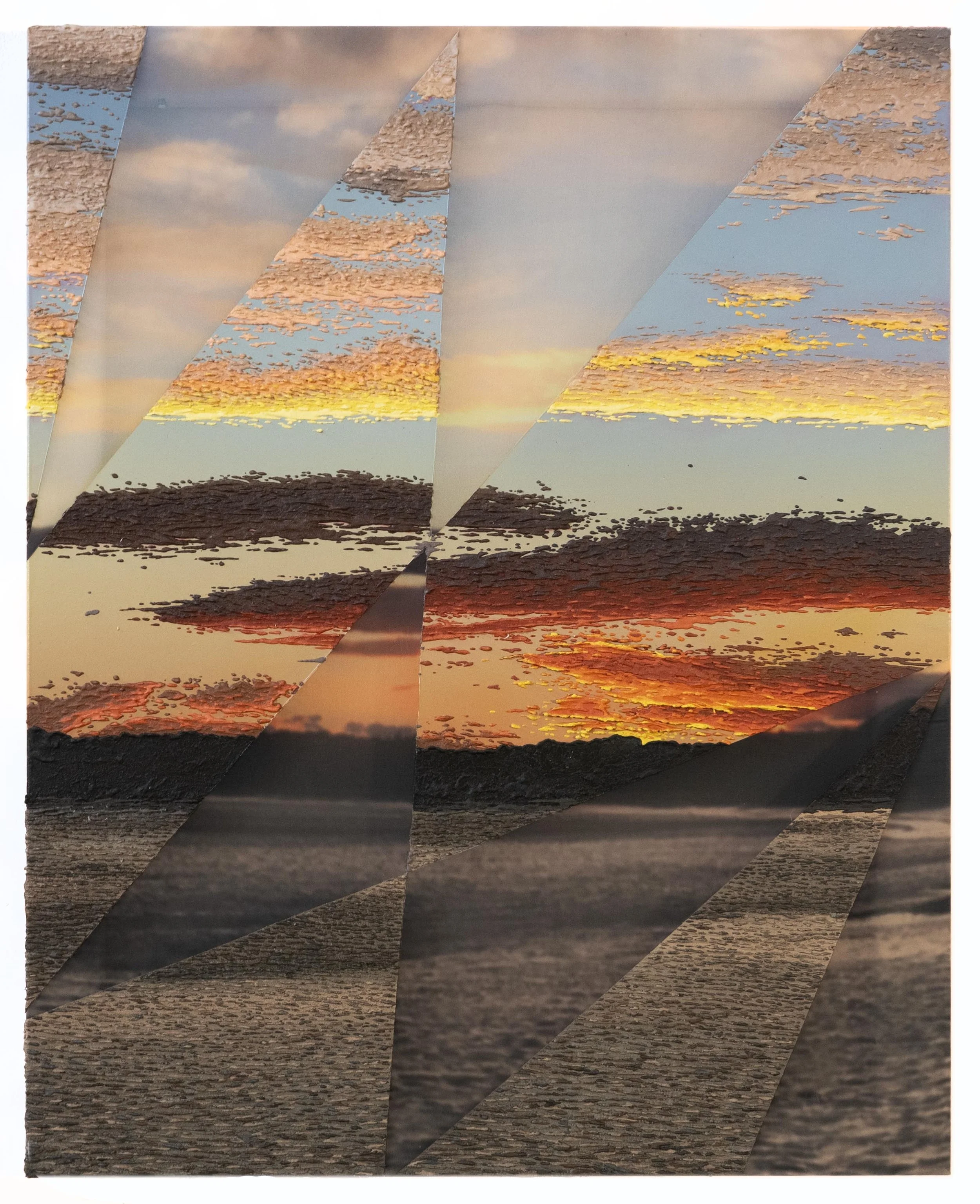 Saskia Fleishman: Kettle Cove July 6, 2018, 8:18pm (2025) Acrylic and locally sourced sand on digitally printed chiffon 39 x 31 inches, $6,000 USD