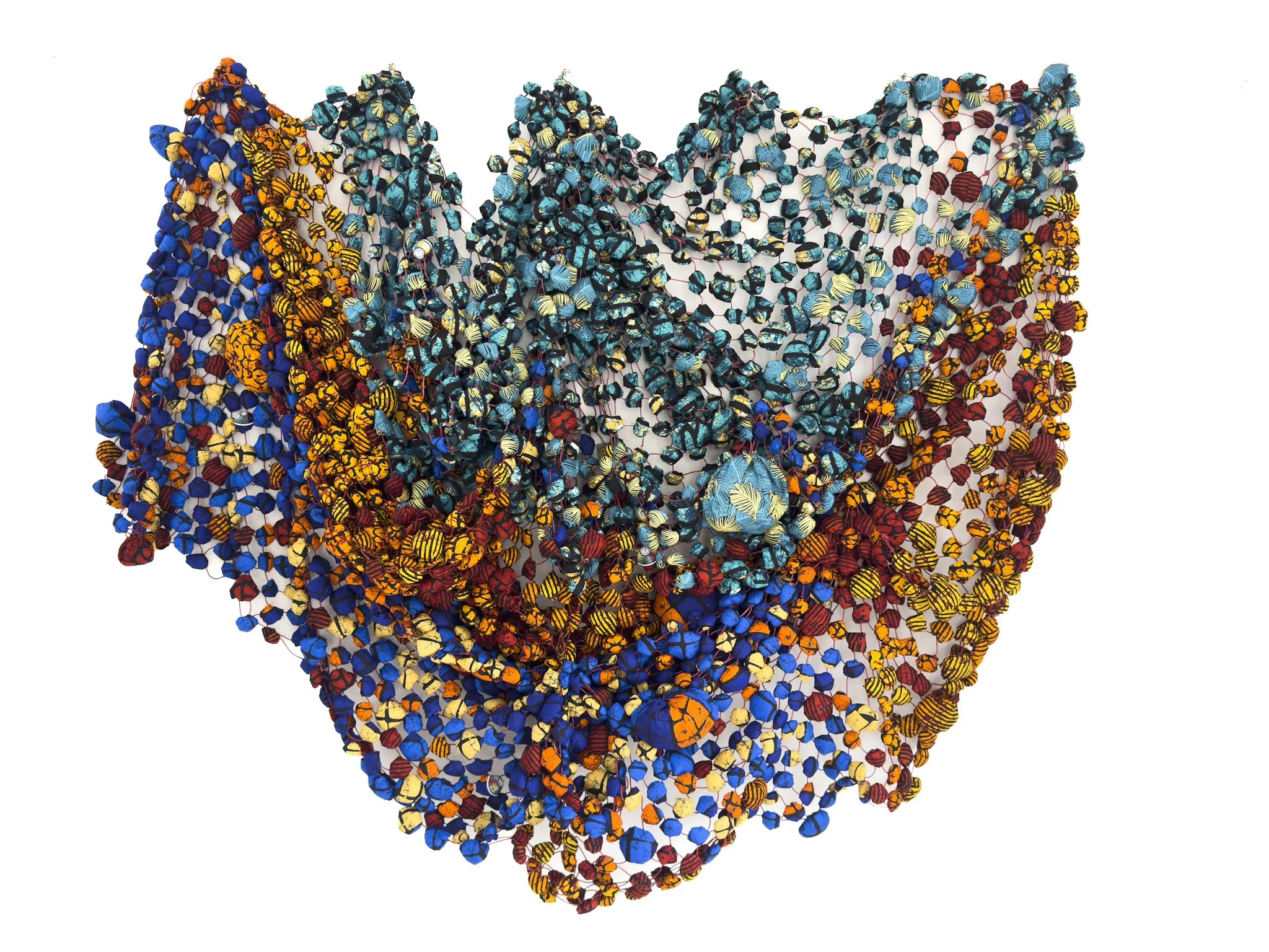 Samuel Nnorom: When Light, water meets the Ground (2024), African Print Fabric, 155 x 142 x 24 cm. / 61 x 56 x 9.5 in. $11,000 USD