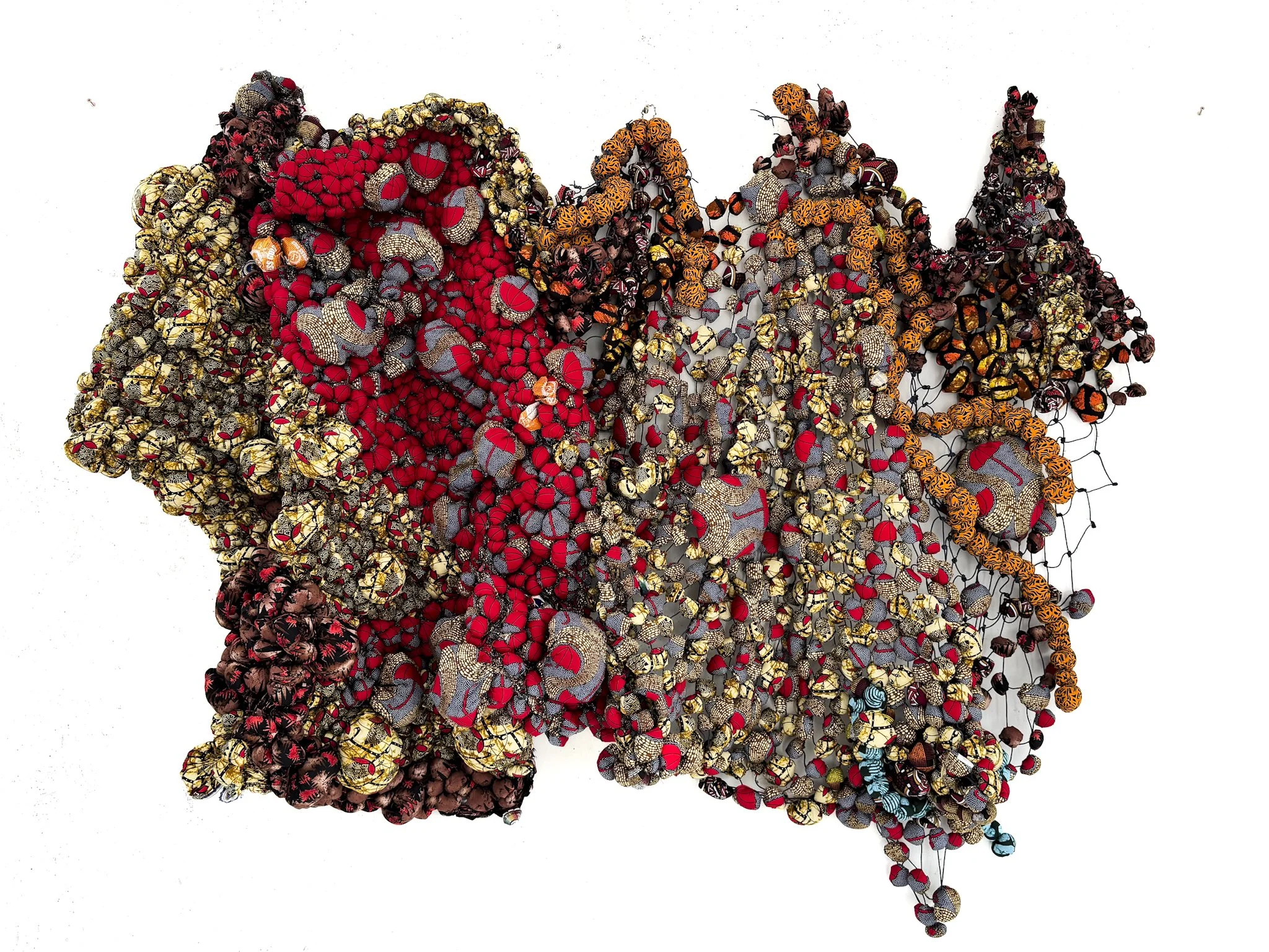 Samuel Nnorom: Now, Comes life in Ovaries (2024), African Print Fabric, 147 x 124 x 34cm. / 57.8 x 49 x 13 in. $11,000 USD